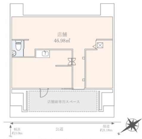 建坪数(店舗坪数) | 14.21坪 (46.98平米) | 敷坪数 | − 坪 (− 平米) |