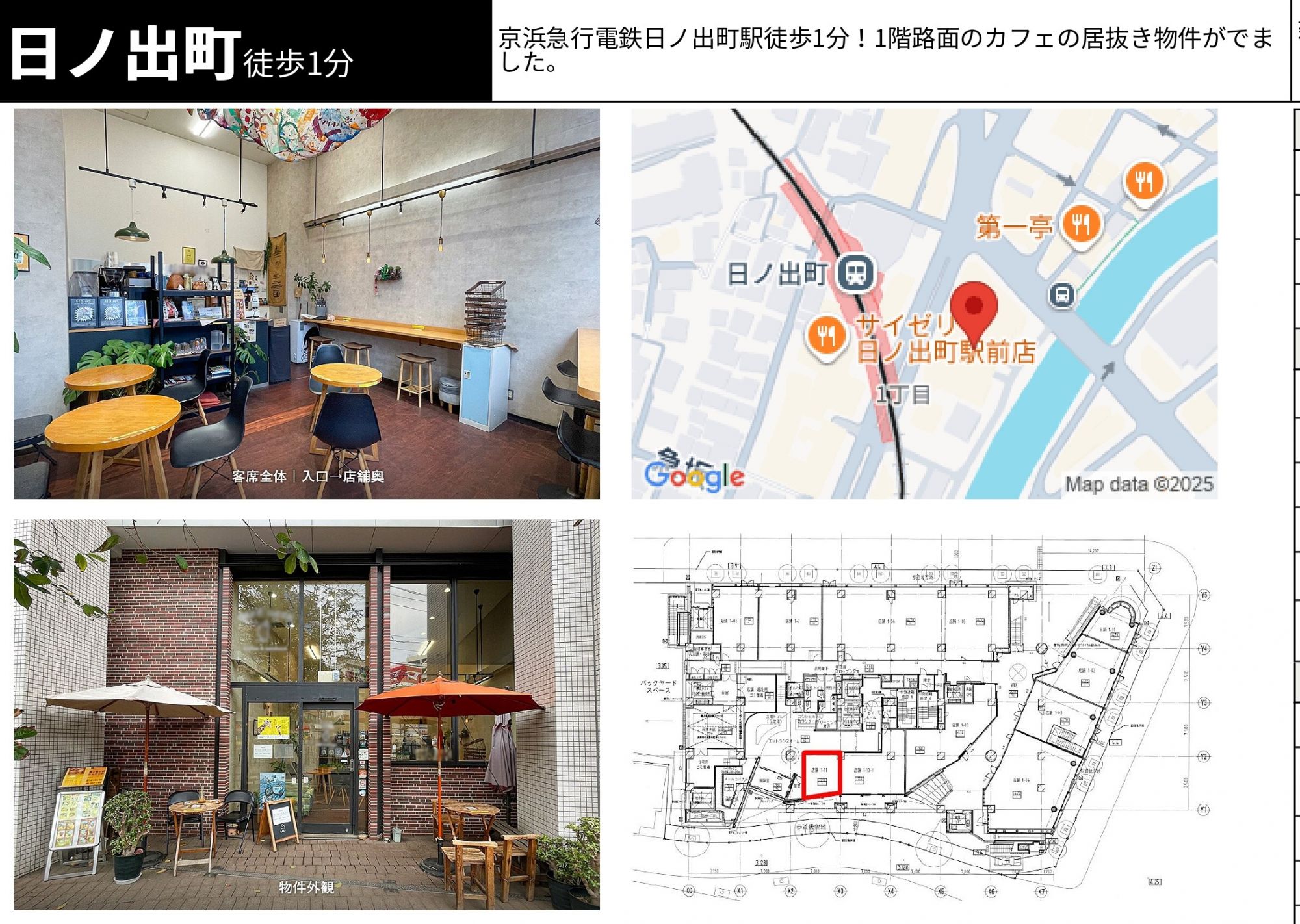 | 出展タイトル | 京急本線日ノ出町駅徒1分!1階路面カフェの稀少!物件 | ||