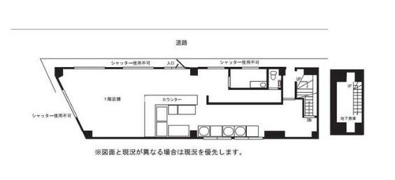 | 店舗階数 | (店舗) 1階 / (建物) −階 | 店舗階数:備考 | B1~1階一括貸し |