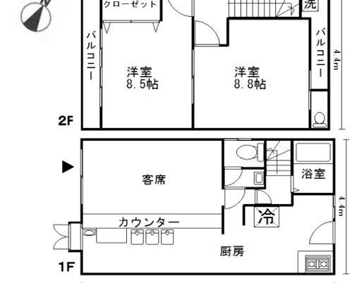 | 店舗階数 | (店舗) 1階 / (建物) −階 | 店舗階数:備考 | 1~2階一括貸し |