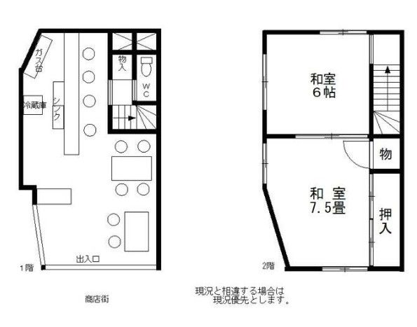 | 店舗階数 | (店舗) 1階 / (建物) −階 | 店舗階数:備考 | 1~2階一括貸し |