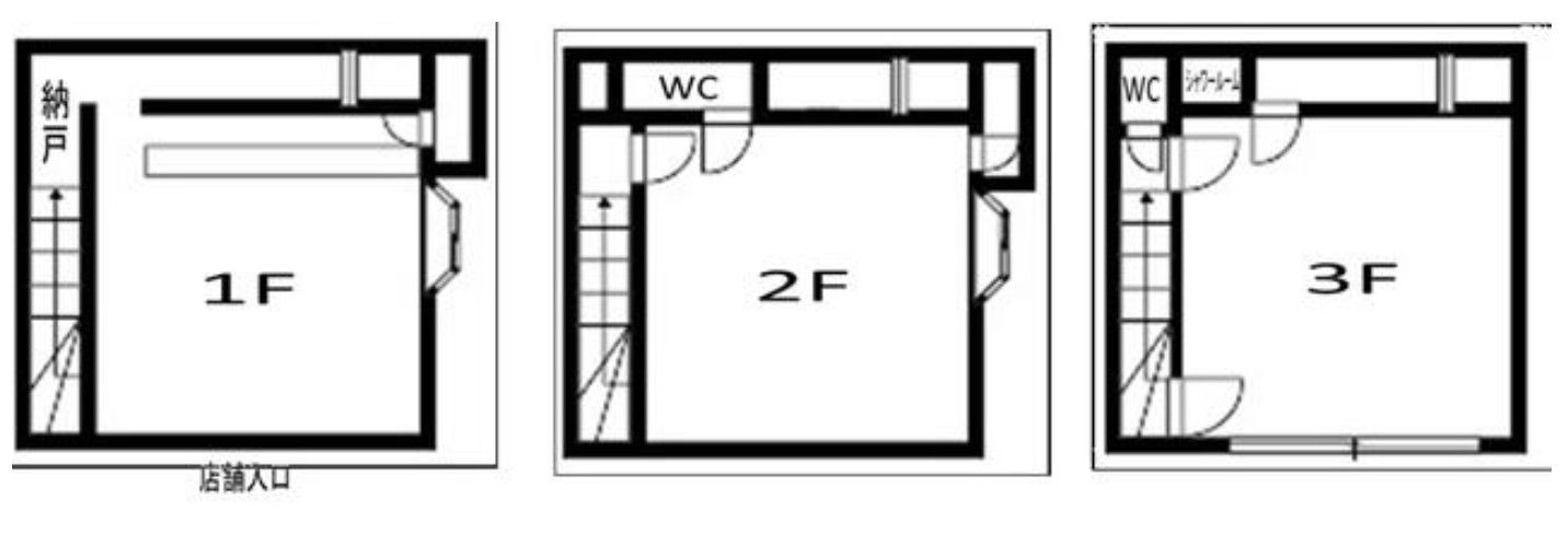| 店舗階数 | (店舗) 1階 / (建物) −階 | 店舗階数:備考 | 1~3階一括貸し |