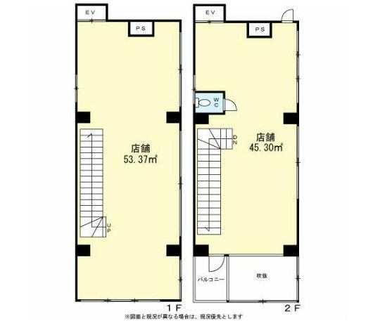 | 店舗階数 | (店舗) 1階 / (建物) −階 | 店舗階数:備考 | 1~2階一括貸し |