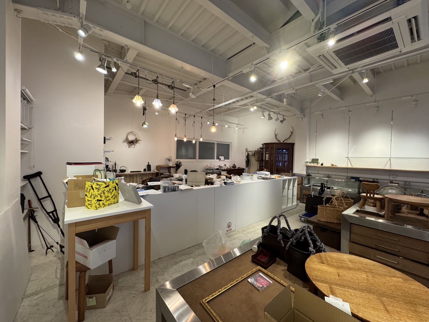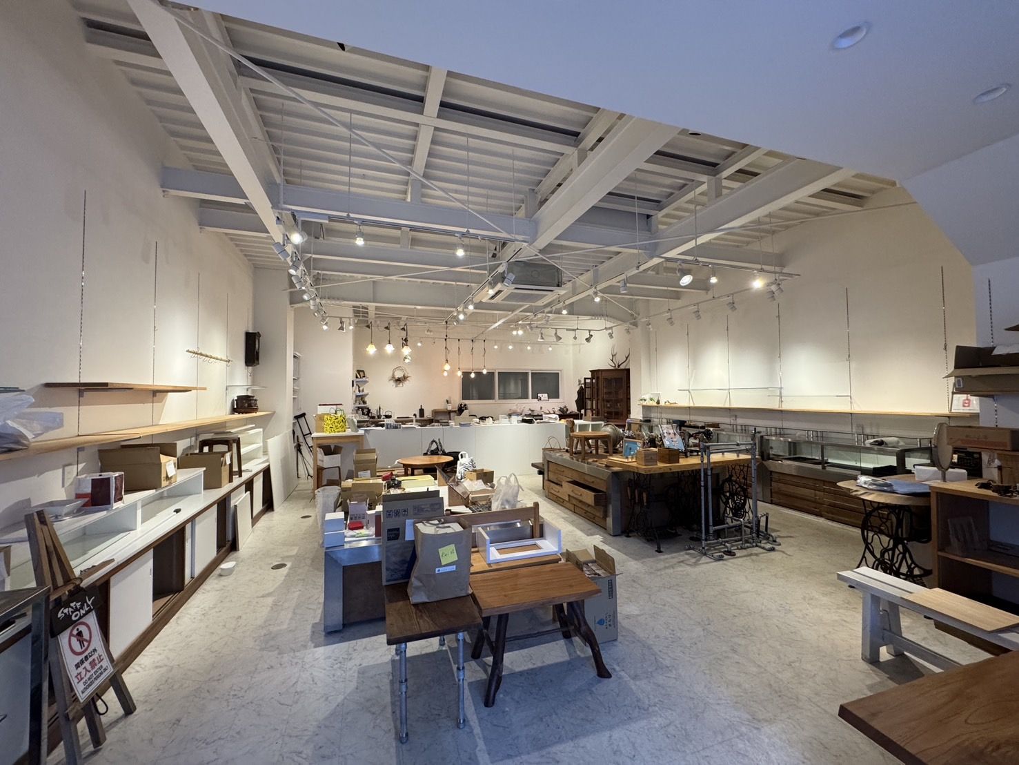 棚やカウンター、可動式棚などは残っており、物販であれば即営業可能な状態