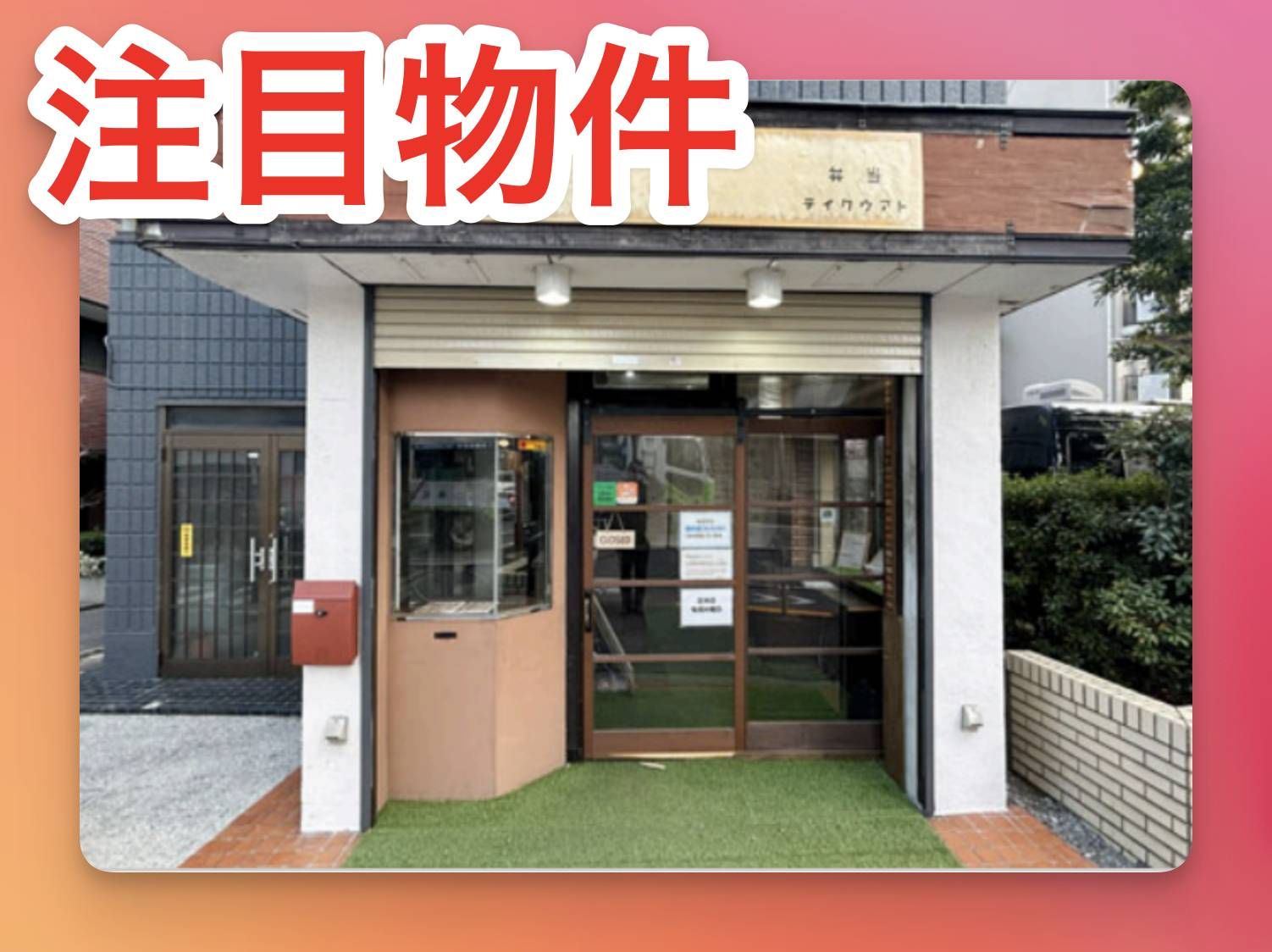 | 出展タイトル | 駅チカ・第一京浜沿い角地で視認性良好なテイクアウト店居抜き物件⭐︎ | ||